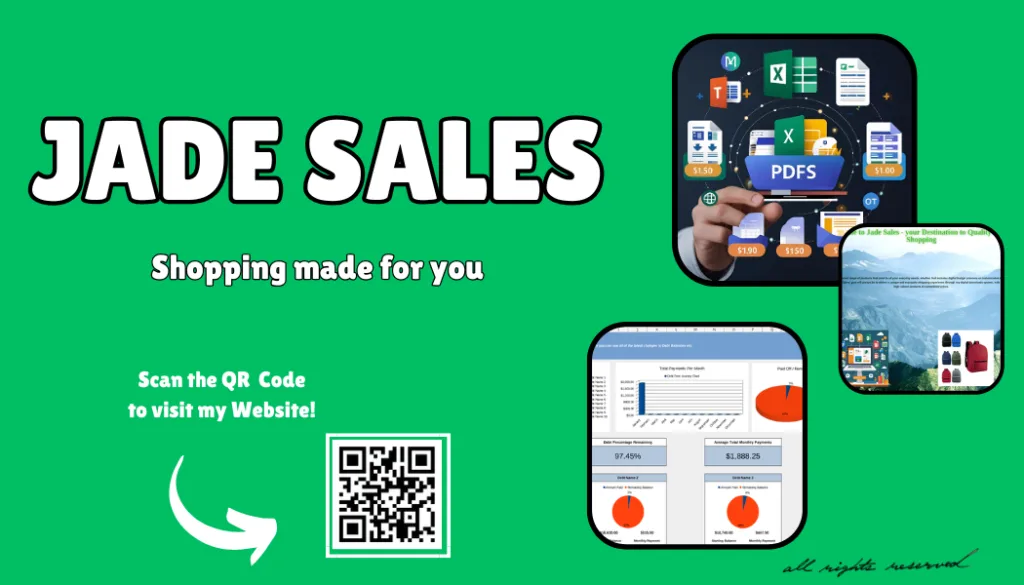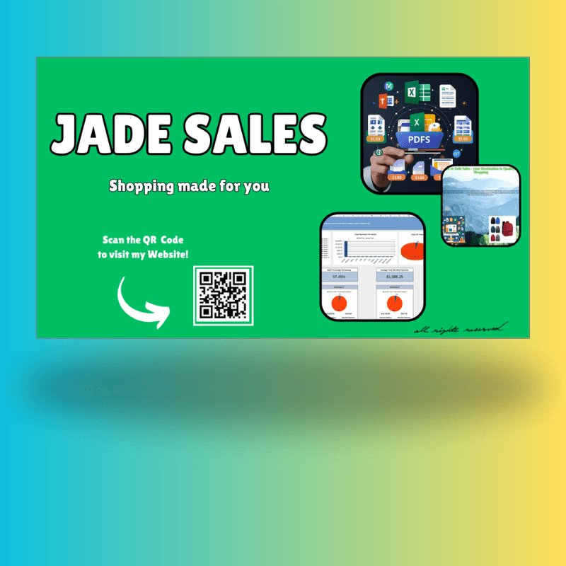 We strive to offer a mixed range of products that cater to all your everyday needs, whether that includes digital budget planners or customizable templates. No matter the situation, Jade Sales’ goal will always be to deliver a unique and enjoyable shopping experience through my digital downloads system. With a wide selection of high-value products at competitive prices.