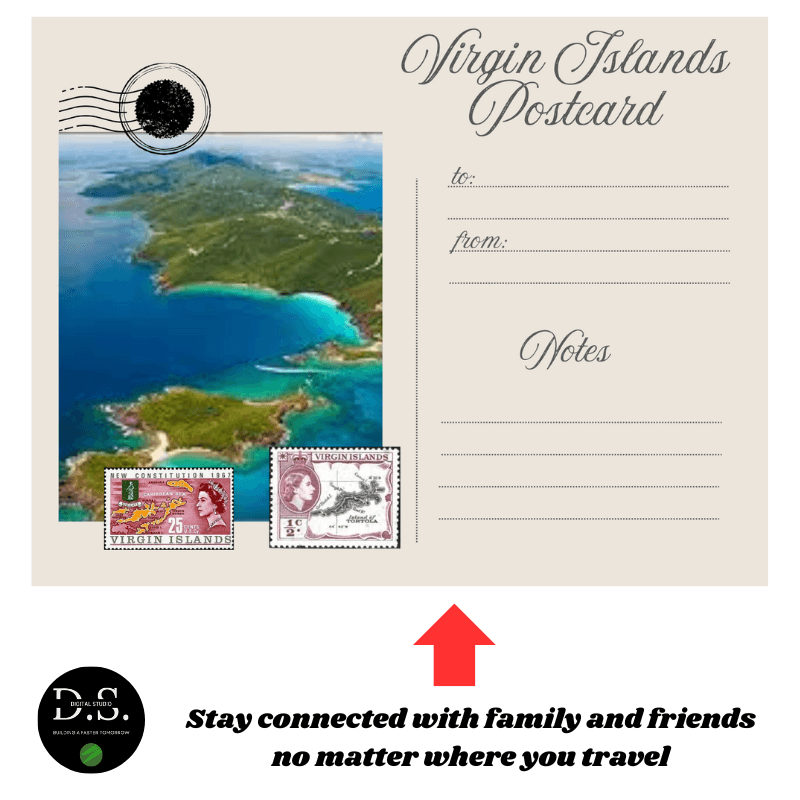 Virgin Islands Vacation Vintage Postcard – Discover a slice of heaven with our Vintage Postcard, an expertly crafted digital design ideal for sharing your island escapades or marketing a dream vacation!